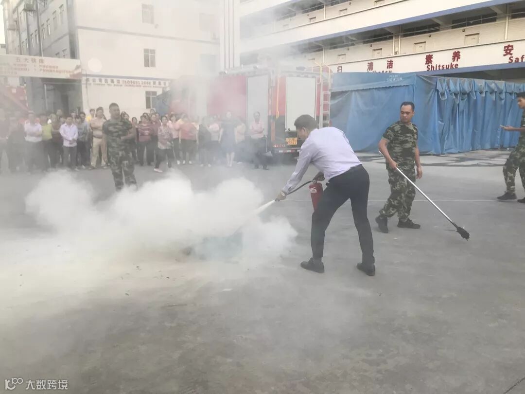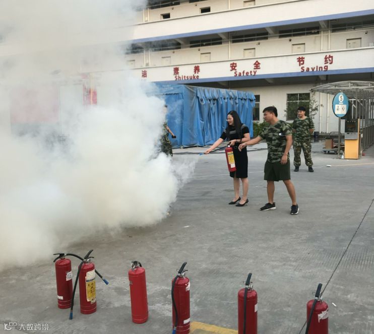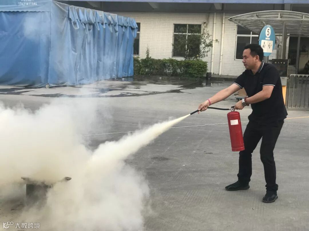 树脂部万总在示范如何使用灭火器