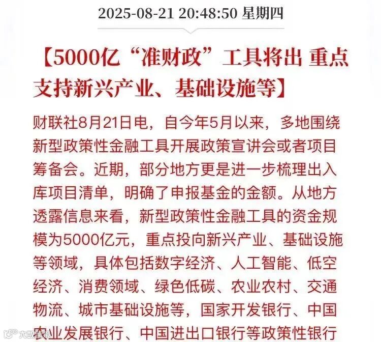 2025年8月22日 —— 在国家新一轮稳投资、促创新的重大政策布局中,低空经济作为战略性新兴产业的代表,正迎来前所未有的发展机遇。据财联社8月21日报道,我国即将推出规模达5000亿元的新型政策性金融工具,重点支持包括低空经济在内的多个前沿领域,为这一万亿级产业的快速发展注入强劲动能。