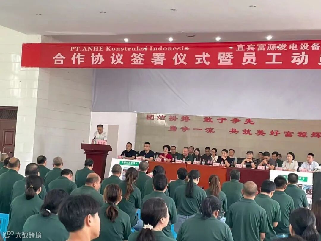 On September 24, 2025, the signing ceremony of the cooperation agreement between PT. ANHE KONSTRUKSI INDONESIA (PT Anhe) and Yibin Fuyuan Power Generation Equipment Co., Ltd., along with the employee mobilization meeting, was successfully held at Fuyuan's company headquarters. The event was attended by Mr. Luo Zechao, Deputy Mayor of Changning County, Ms. Jiang Huafang, dispatched by the Provincial Organization Department for Fuyuan's Party Building Guidance, Mr. Liu Zhengqi, Head of the Mechanical Manufacturing Industry Section of Yibin Municipal Economic and Trade Commission, Mr. Hou Xianyu, and Mr. Wen Xiaoqiang, Director of the Changning County Industrial Park Management Committee, along with party and government leaders, Mr. Zhou Yuefei, Chairman of PT Anhe, and his team, as well as Mr. Tang Mingshu, Chairman of Fuyuan, and members of the leadership team. All employees of Fuyuan witnessed this important moment.