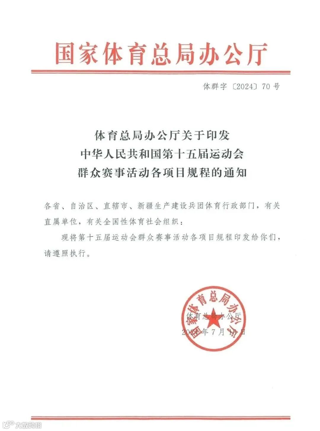 近日体育总局办公厅印发了