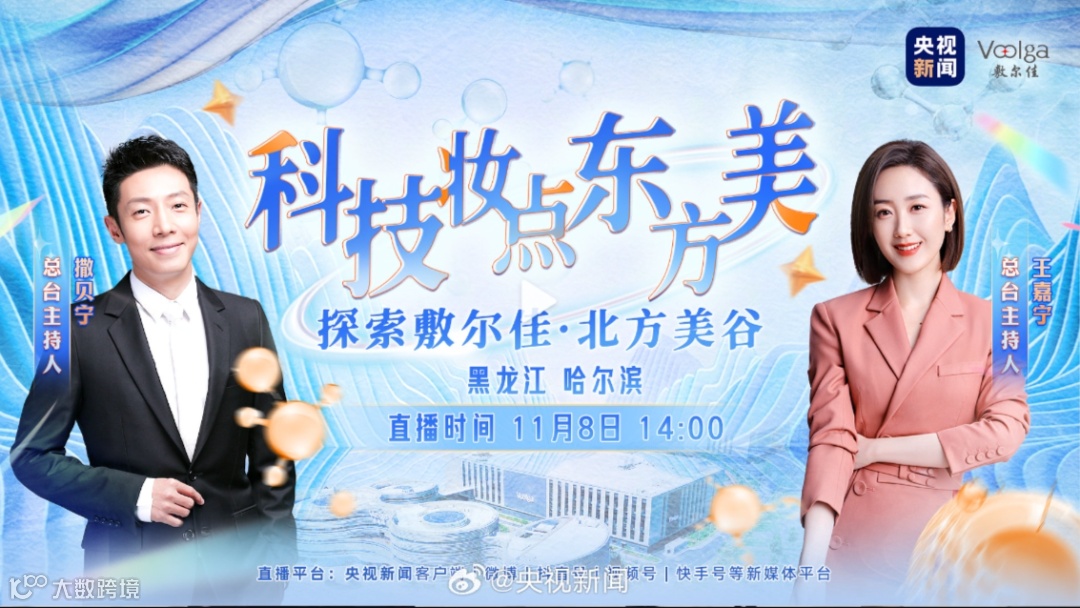 11月8日,哈尔滨敷尔佳·北方美谷项目迎来了央视新闻总台主持人撒贝宁、王嘉宁的实地探访。