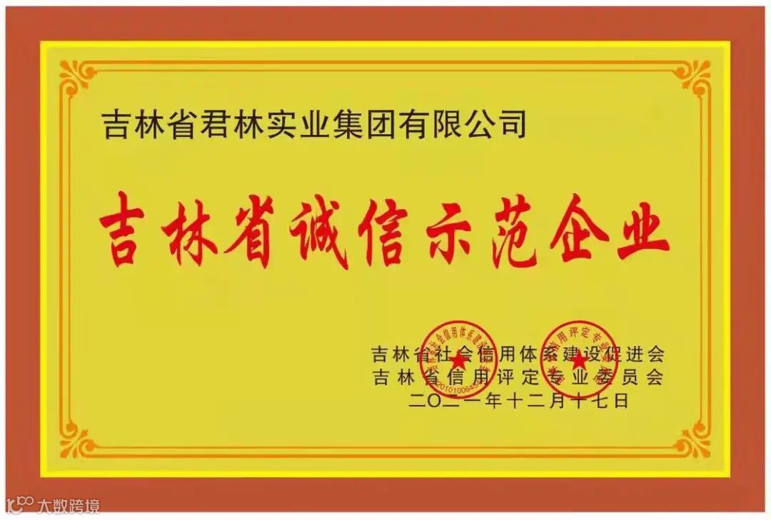 近日,吉林省社会信用体系建设促进会在全省范围内开展诚信示范企业创建活动,吉林省君林实业集团被授予“吉林省诚信示范企业”称号。