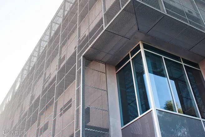 金属网幕墙一般以耐候性好的铝合金、不锈钢、铜类丝网制成,早期,金属网常用于防护网、围墙和围栏中,现如今,金属网被创造性引入建筑饰面领域。