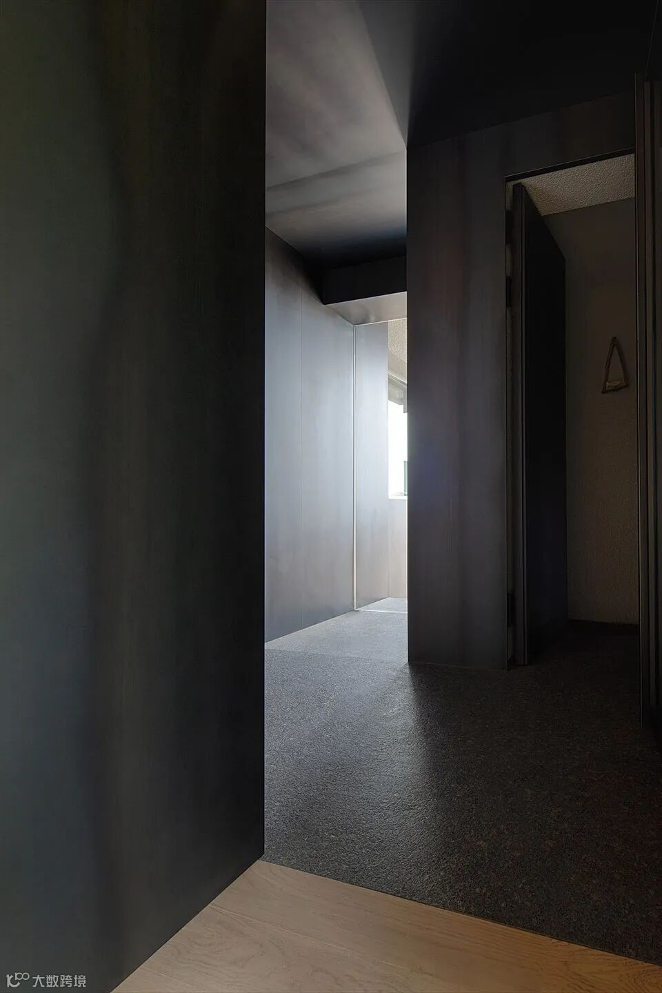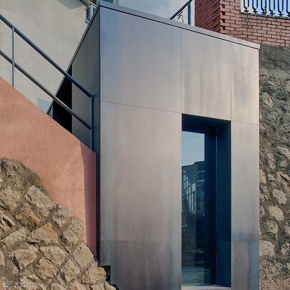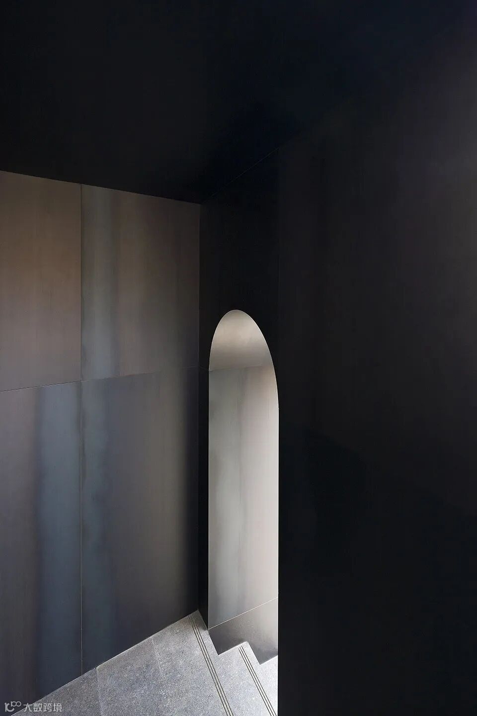 建筑外观采用黑色石材,营造出一种冷静安谧的氛围