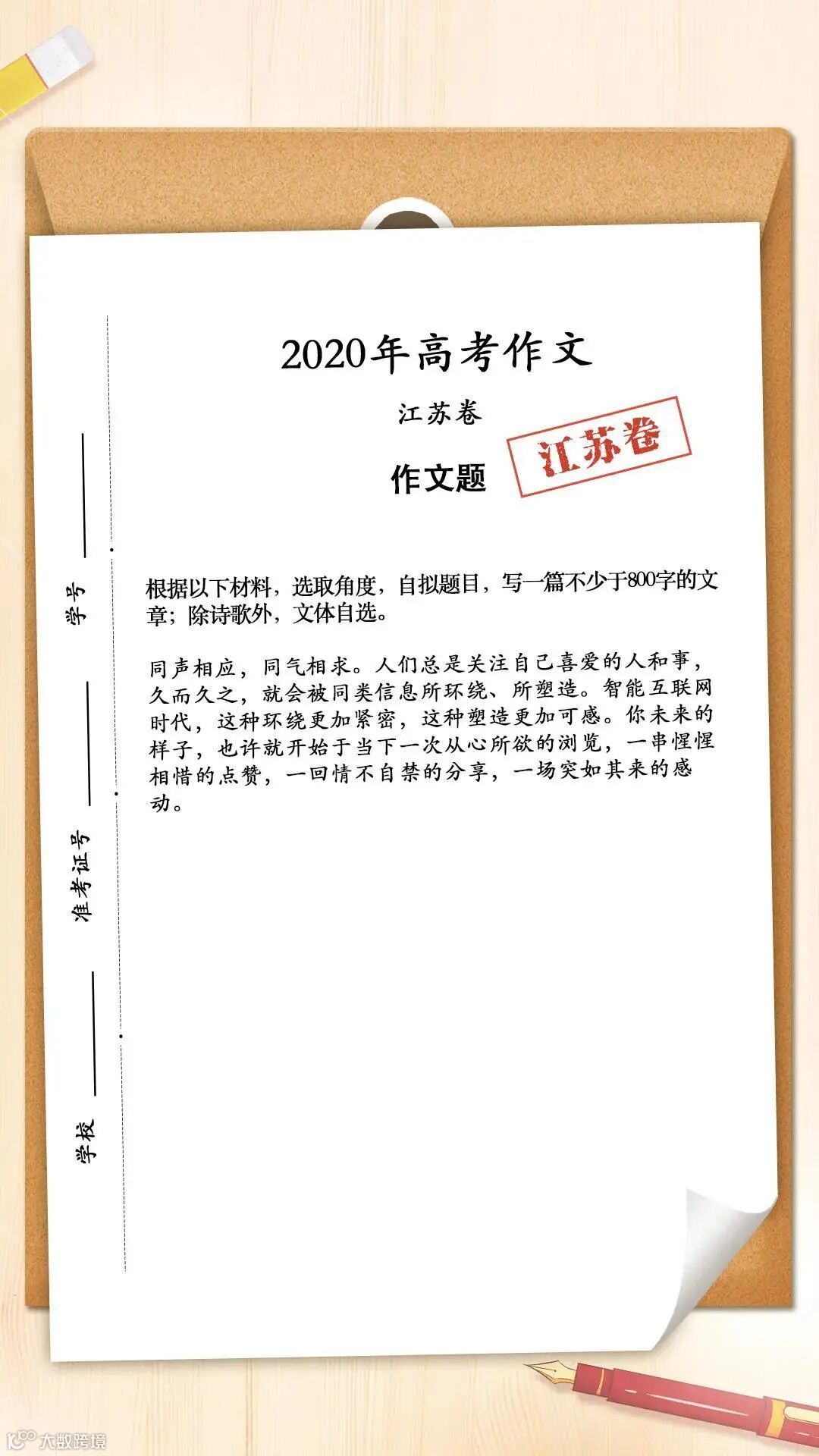 @学习:江苏高考作文,同声相应,同气相求,你考你的国家情怀,我考我的风花雪月!