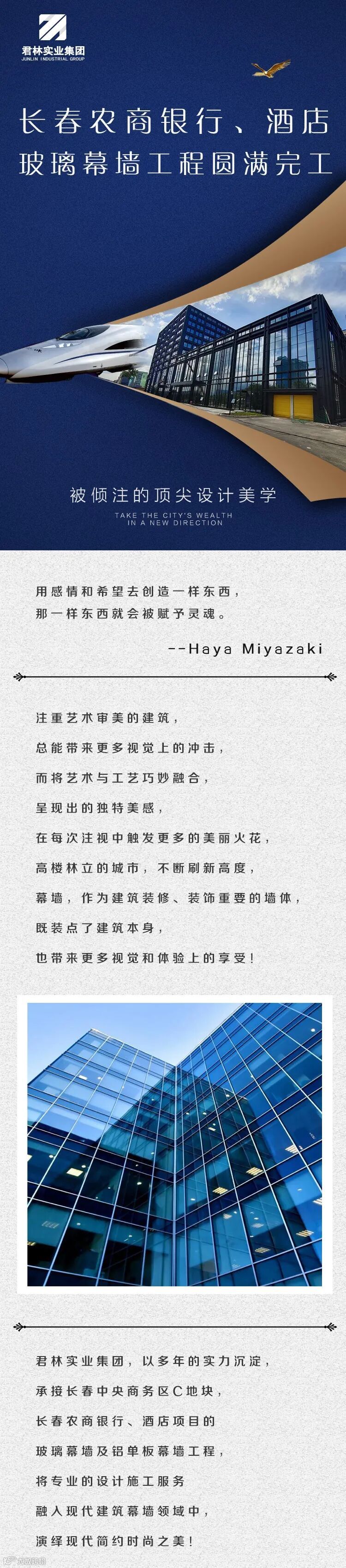 导读:长春农商银行、酒店 | 玻璃幕墙工程圆满完工