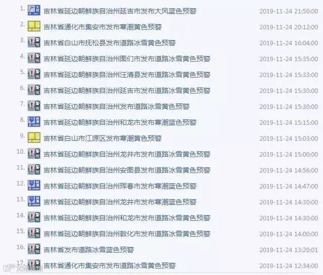 吉林省共发布数十条预警信息,