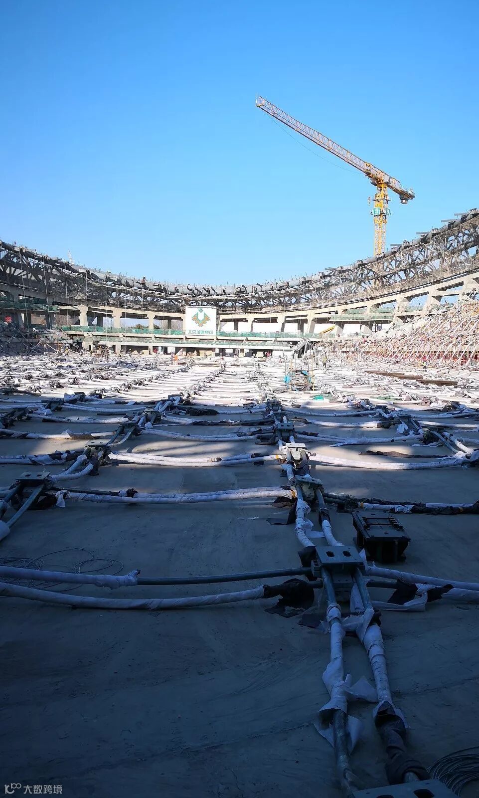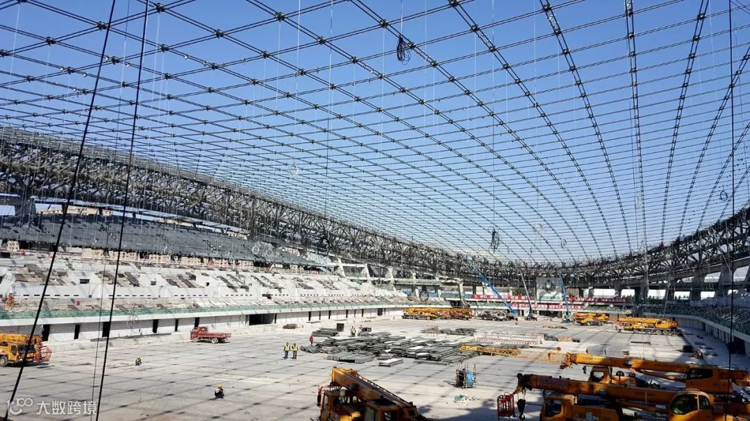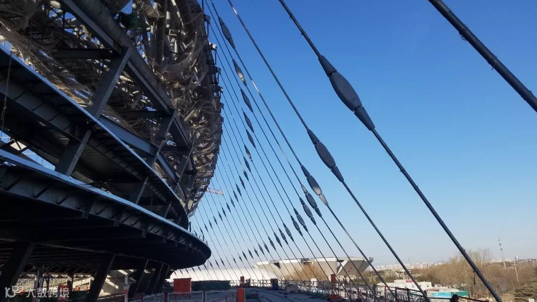 在包括索网张拉在内的钢结构主受力体系的设计、加工和安装过程中,上述理念得到了有效贯彻,保证了结构安全与张拉完成后受力体系的合理状态。由北京城建集团有限责任公司总包、北京市建筑工程研究院有限责任公司专项分包的施工团队,在当前索网张拉作业已经完成的情况下,正在现场根据气候条件、施工进度安排等择机开展支座的固定工作,形成整个场馆稳定的主受力体系,为后续施工创造作业条件。