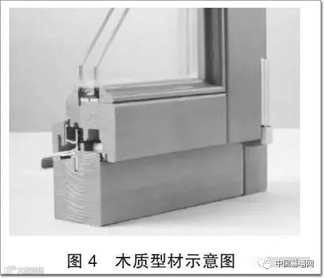 木质型材如图4 所示。木质型材因种类和产地不同,其组成有很大差别但导热系数也非常低,在0.14 W/(m·K)左右。木质型材低导热率使其成为节能窗,尤其受被动房用窗的青睐。同时,木质型材燃烧过程中,表面形成的碳化层导热率比基材更低,因此具有非常好的耐火完整性,甚至比钢结构更耐燃烧。