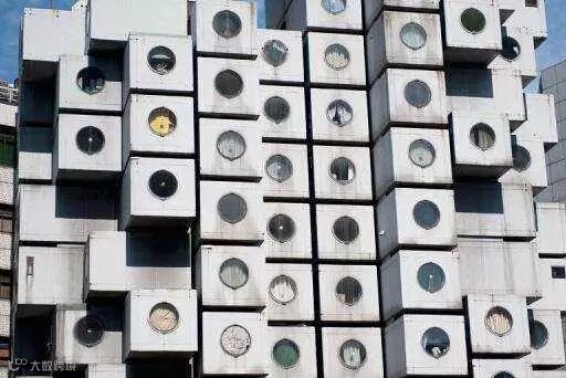 中银胶囊塔是一幢造型特殊的住宅、办公建筑,由黑川纪章设计于1970年,是日本建筑界代谢运动的代表作品。它被认为是现代建筑史上首座真正以胶囊般的建筑模块兴建的建筑,它由两座相互连结的大楼组成,总共包含了140块预铸建筑模块,每一个独立单位被设计为可以独立更换的模块。