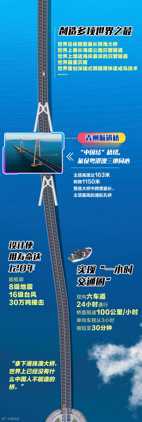 港珠澳大桥建成通车,具有里程碑意义,标志着中国从桥梁大国走向桥梁强国。