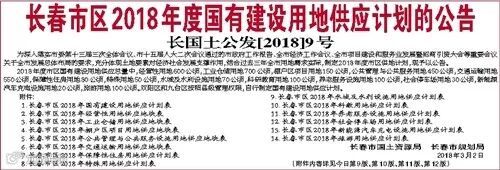 《长春市区2018年度国有建设用地供应计划的公告》