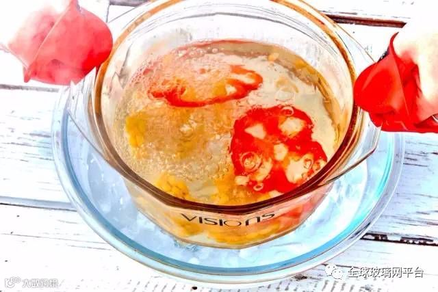 小编还把煮汤刚刚煮到沸腾的康宁锅,直接端进了一盆冰块水中,它也安然无恙。