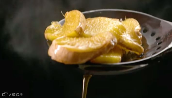 2、切好后的姜与红糖拌匀,将碗用东西盖好后放蒸锅里,大火蒸半个小时后就可以了;