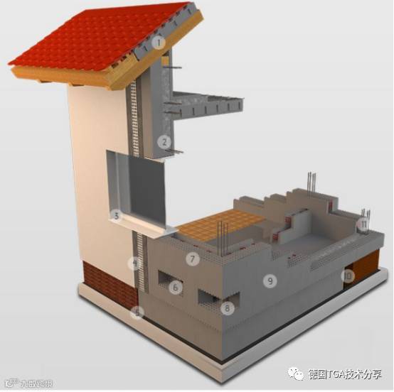 德国装配式混凝土结构建筑墙体的结构也不复杂,先是预制混凝土板,然后做保温、防水等。混凝土预制构件在工厂制作完成后,运至施工现场安装。