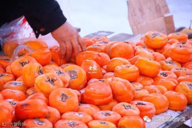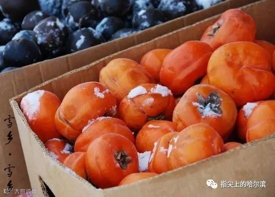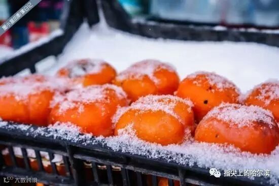 “冻柿子”是要霜降后才摘的柿子,冷冻储存到冬天,此时里面只剩一包水,只能吸食。