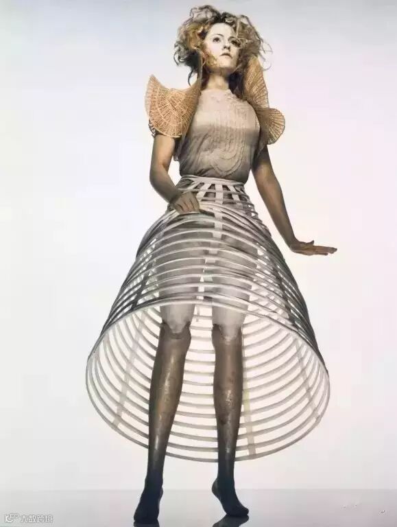 踩着木质义肢走上T台,