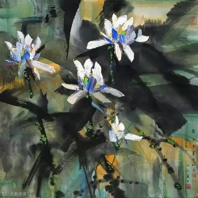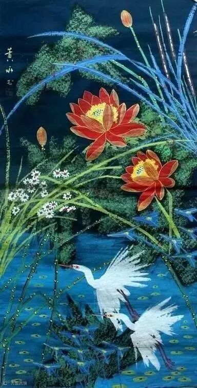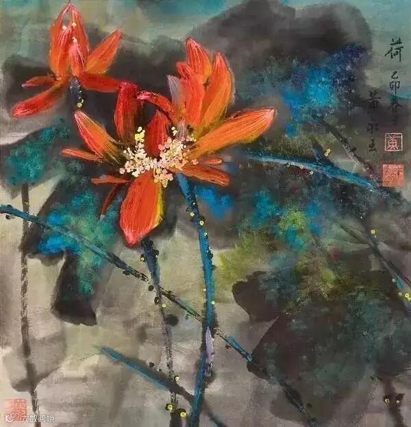 黄永玉最喜欢用大红大绿的鲜艳颜色画荷花。