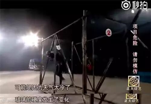 主持人表示,大概是天气太冷,玻璃的硬度发生了变化。
