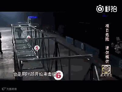 因此,此次来中国参赛他可谓是信心满满,他放话说要挑战的记录是17块钢化玻璃。