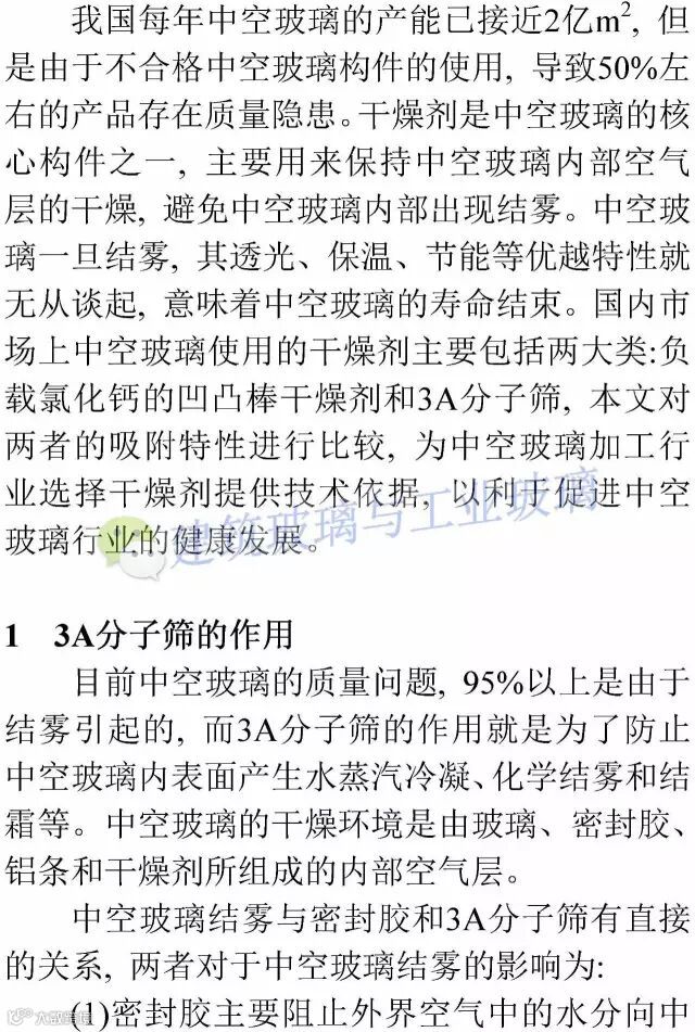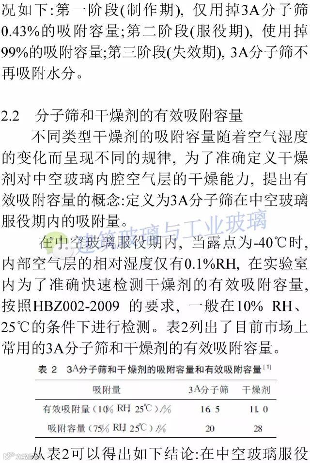 3A分子筛在中空玻璃内的吸附性能研究