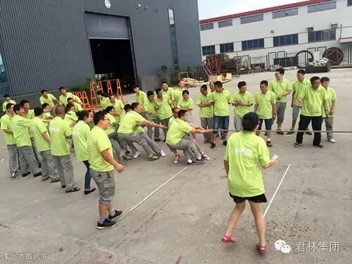 拍照后所有家人都整装待发的开始了拔河比赛。拔河比赛的重量级队伍,是由公司总经理韩雷先生带领的中老年团队,这绝对都是精英中的精英。