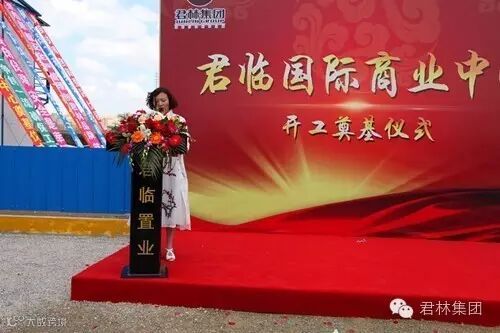 奠基仪式由人事行政部总监——卢丽华女士主持,集团董事长王海林先生做了热情洋溢的讲话,君林集团是集房地产开发、节能幕墙工程设计、施工、节能玻璃深加工、石材矿山开发、销售等建筑行业产业链式集团企业。此次,”君临国际商业中心”是集团首次打造的地产项目重点工程,是对房地产领域一次新的探索,也是发展历程的一个新的飞跃。
