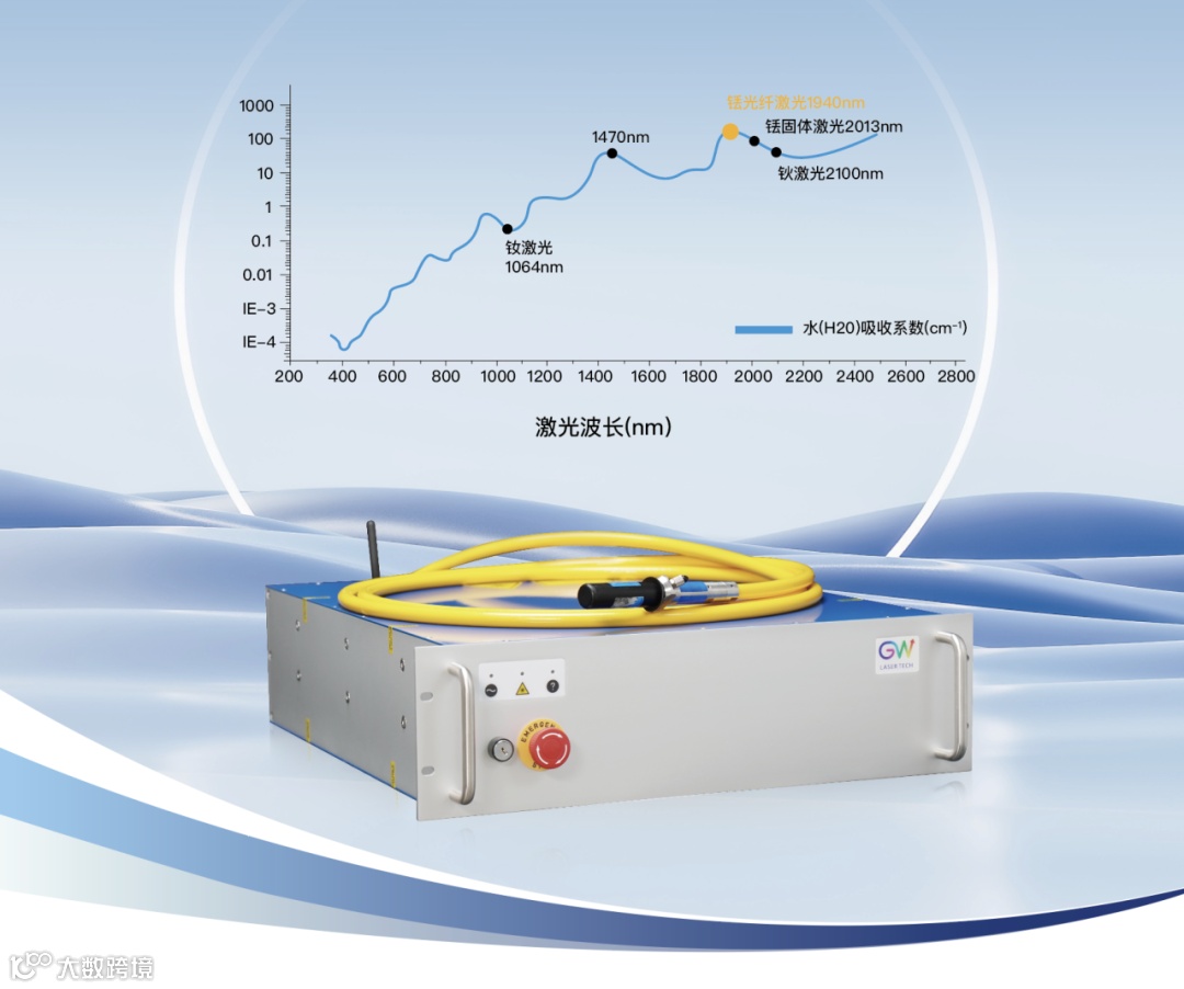 2μm光纤激光器是采用掺稀土元素铥的光纤作为增益介质的激光器,其波长2μm非常接近于中红外光下的水吸收峰值,可以被水分子高效率吸收,是生物组织消融及碎石手术、非金属材料处理应用的理想选择。