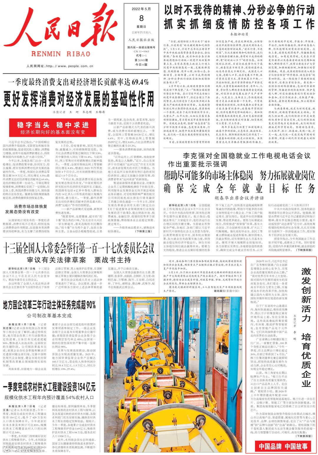 5月8日,《人民日报》头版在专栏“中国品牌 中国故事”刊发题为《激发创新活力 培育优质企业》的报道,关注佛山制造高质量发展的经验做法。
