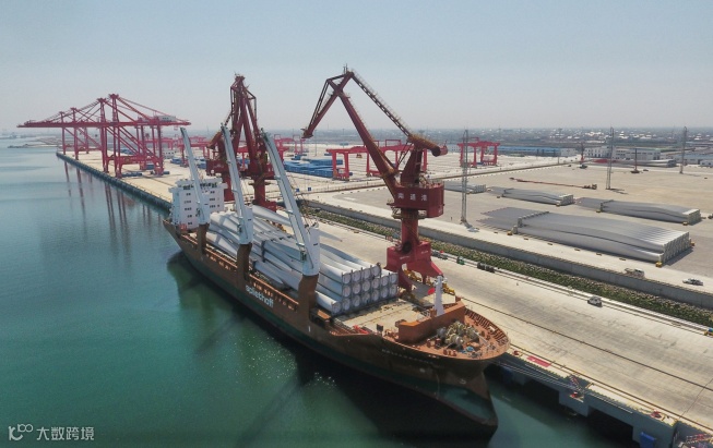 通州湾新出海口吕四起步港区10万吨级通用码头,岸线总长556米,码头宽度42米,设计年通过能力散杂货710万吨,主要货种包括风机叶片、机械设备、钢材、建筑材料及其他件杂货。此次靠泊的德尔塔斯轮于2022年4月8日进港,将装载风机叶片48片,运往澳大利亚。