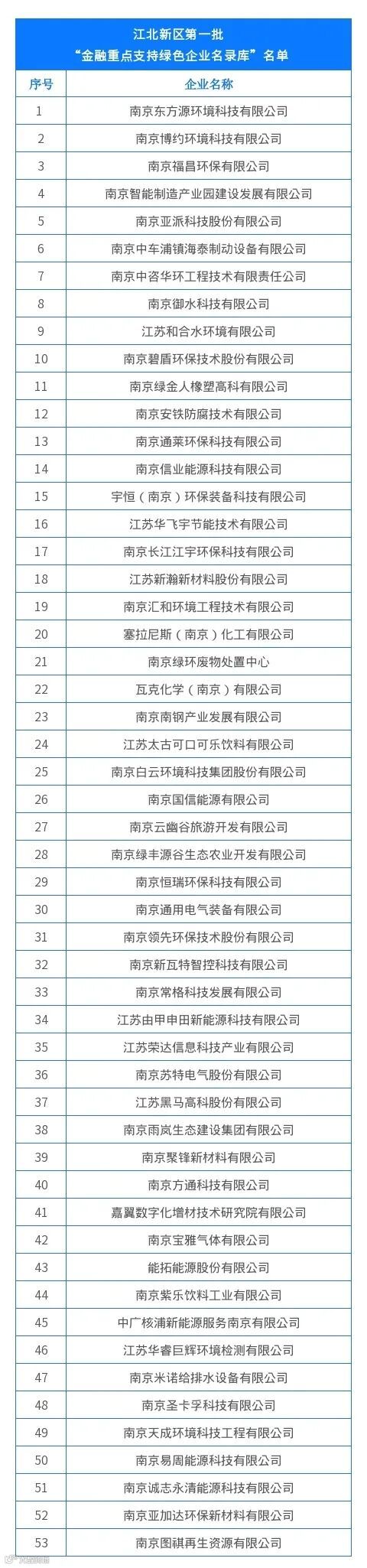 2021年12月,江北新区下发《关于印发〈南京江北新区“金融重点支持绿色企业名录库”管理办法(试行)〉的通知》,旨在打造符合江北新区地方产业特点和支持范畴的绿色低碳企业名录。