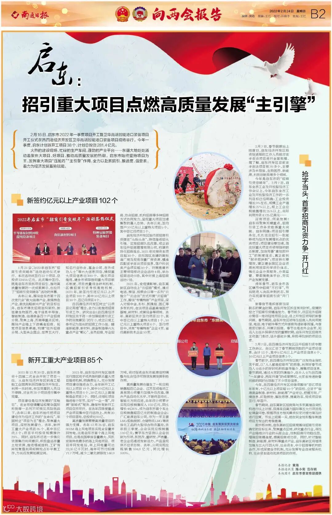 项目建设是经济发展的“压舱石”。在全球疫情蔓延和复杂国际形势等一系列不可预见风险挑战下,去年以来,启东市始终把项目建设作为经济工作的“生命线”,牢固树立“项目为王”理念,聚焦重大项目,深挖发展潜力。去年,新开工重大产业项目85个,其中百亿级2个;项目平均投资规模提升29%。同时,启东市还进一步强化资源集约利用意识,积极盘活存量土地资源,推进增减挂钩、工矿废弃地复垦利用和耕地占补平衡工作,为长远发展拓展空间。