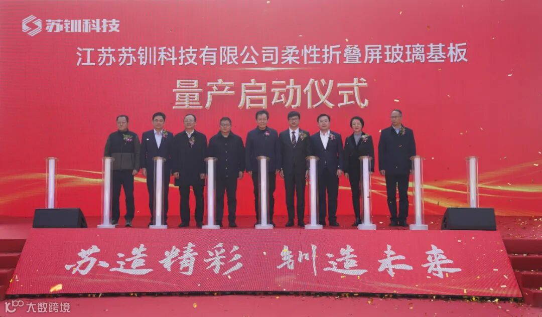 12月29日,园区企业苏钏科技举行柔性折叠屏玻璃基板项目量产启动仪式。南通市副市长潘建华,园区党工委书记虞越嵩,江苏苏钏科技有限公司董事长苏志乐出席启动仪式。
