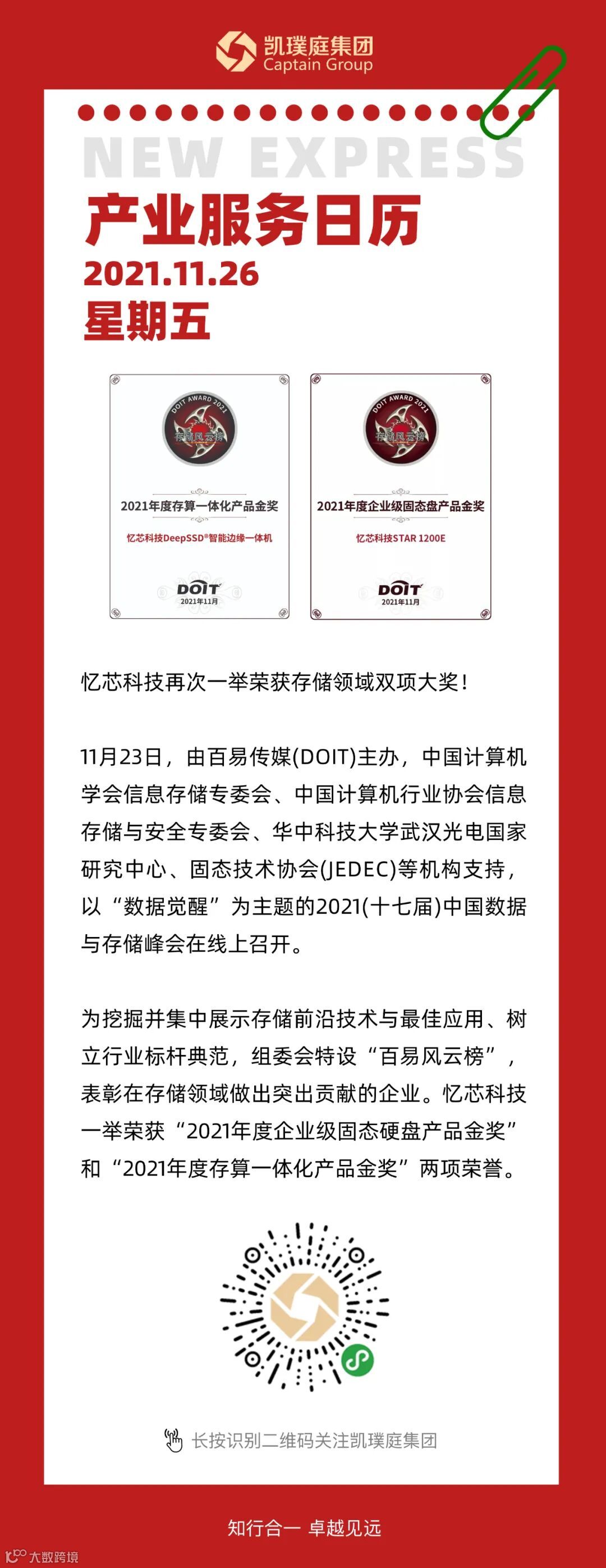 喜报!!!我司投资的忆芯科技荣获“2021年度企业级固态硬盘产品金奖”和“存算一体化产品金奖”双项大奖