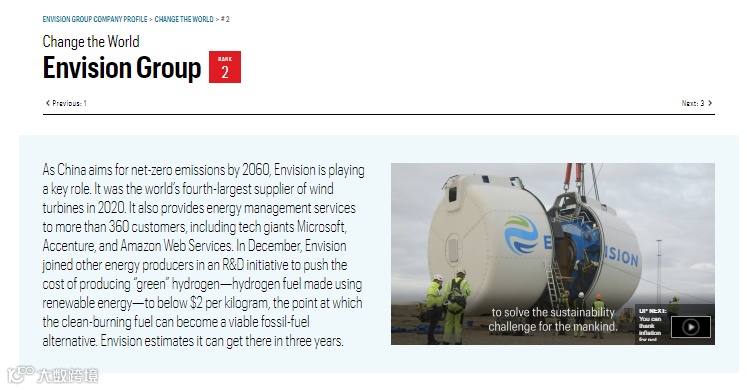远景科技集团(Envision Group)是一家全球领先的绿色科技企业。以“为人类的可持续未来解决挑战”为使命,集团旗下拥有智能风电和智慧储能系统技术公司远景能源、智能电池企业远景动力、开发全球领先智能物联操作系统的远景智能,管理远景-红杉百亿碳中和基金的远景资本,以及远景维珍电动方程式车队。远景持续推动风电和储能成为“新煤炭”,电池和氢燃料成为“新石油”,智能物联网成为“新电网”,开创美好零碳世界。