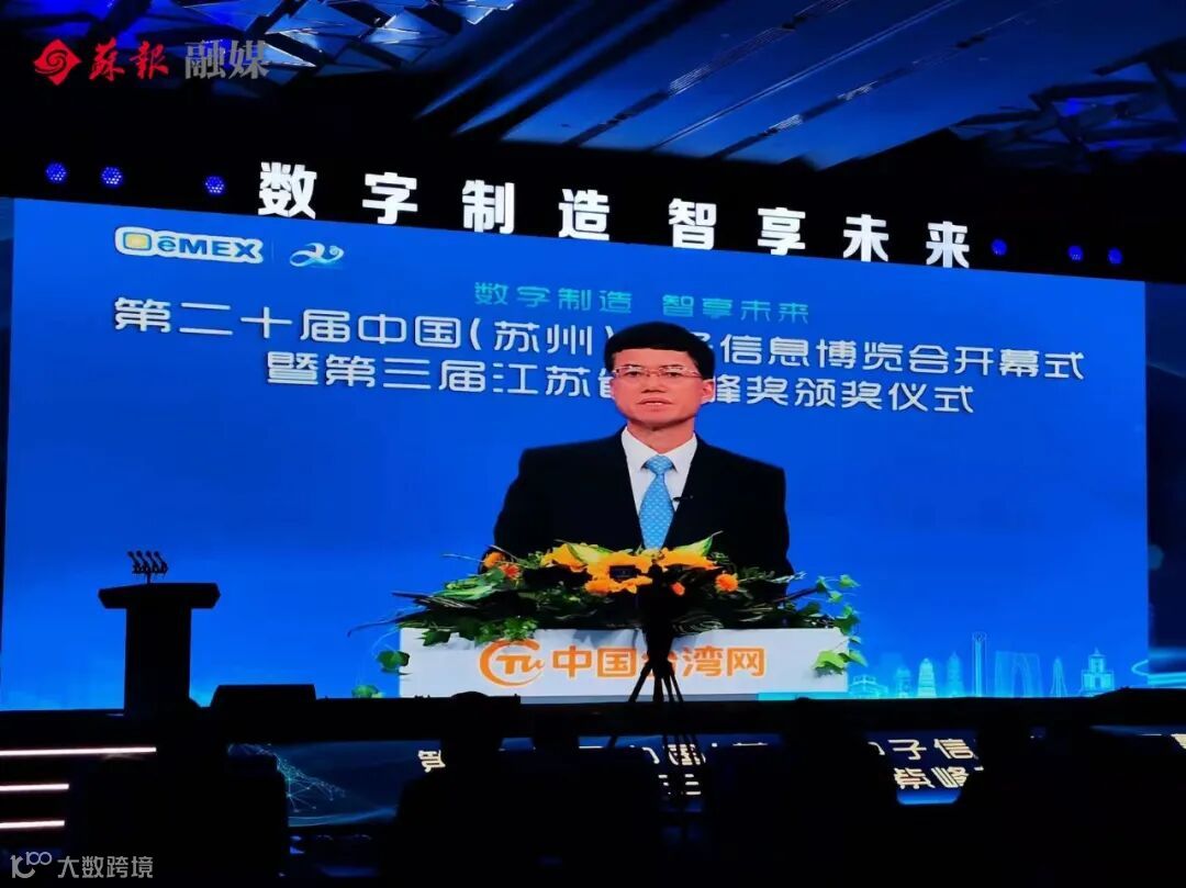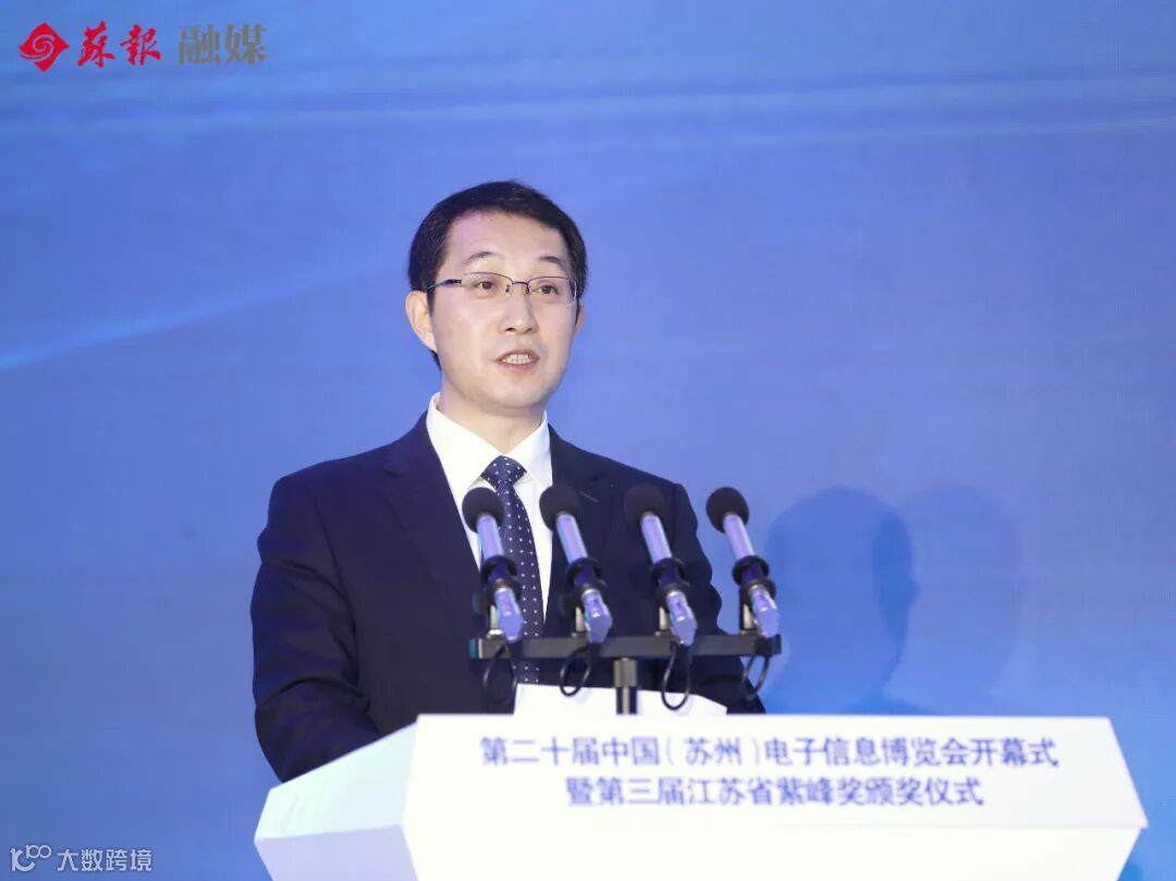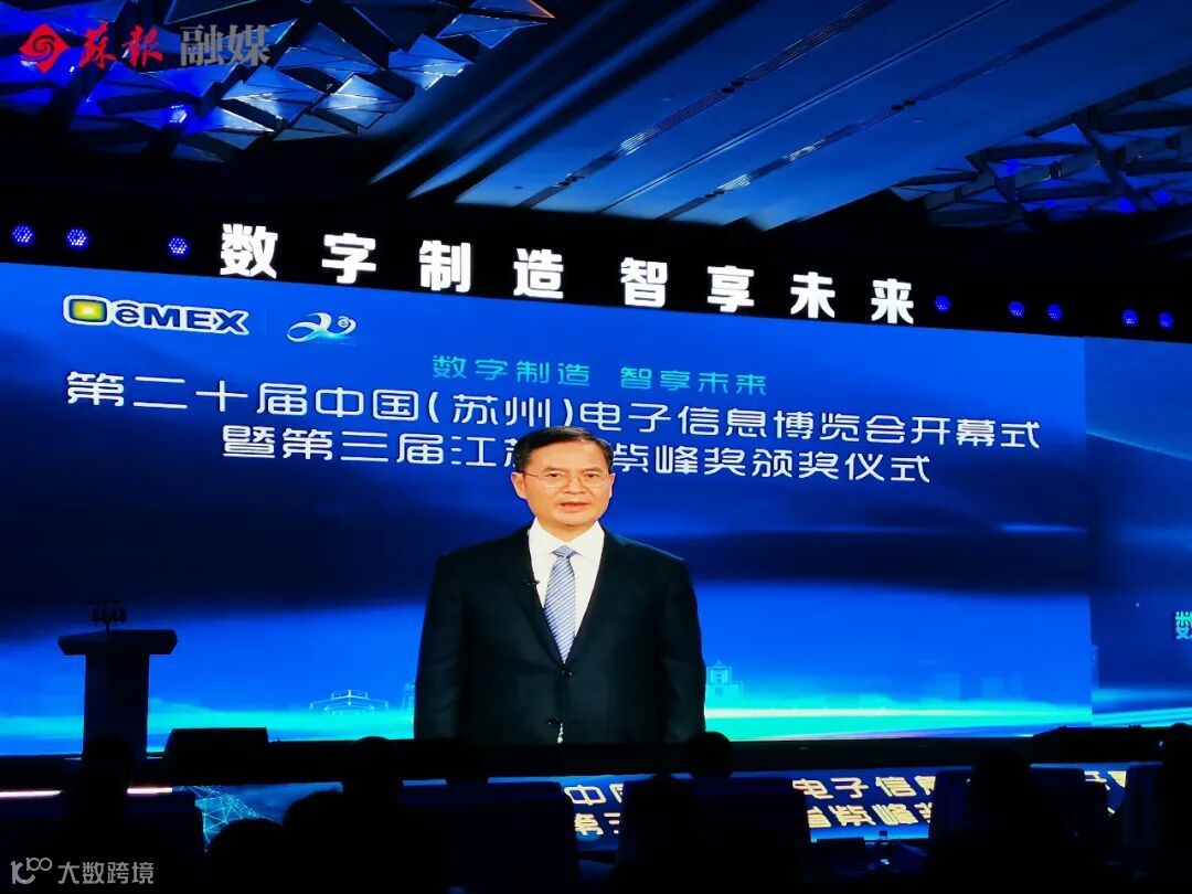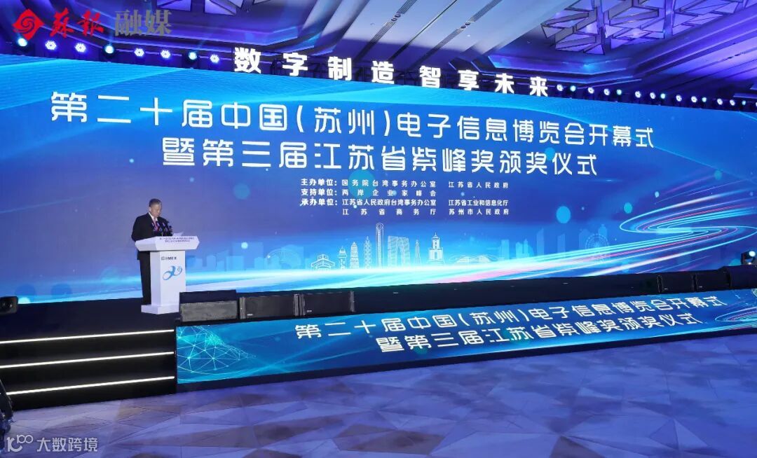 今天,第二十届中国(苏州)电子信息博览会开幕式暨第三届江苏省紫峰奖颁奖仪式在金鸡湖畔隆重举行。国台办副主任裴金佳,江苏省副省长惠建林视频致辞;苏州市委副书记、代市长吴庆文致辞。市人大常委会主任陈振一、市政协主席周伟强出席活动。