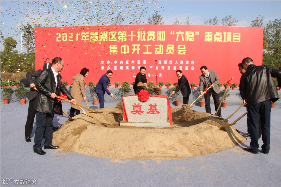 开工仪式现场,出席活动的区领导和项目单位代表共同为新开工项目奠基培土。宣城高新区管委会主要负责人致辞,开工项目单位代表发言。仪式结束后,相关人员集中观摩了宣城上元中工科技产业园开发有限公司展示厅。