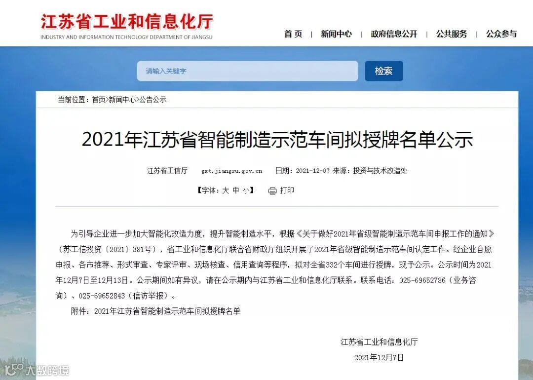 江苏省工业和信息化厅公示