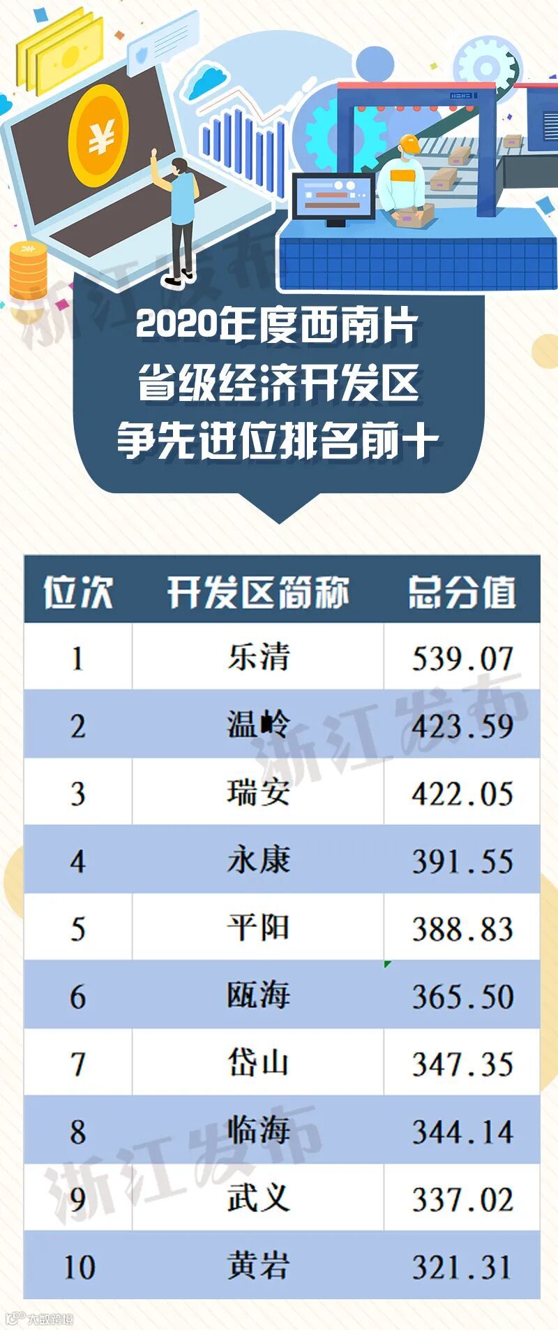 年度先进省级经济开发区分别是:乐清、余姚、桐乡、安吉、南浔、诸暨、嵊州、温岭、瑞安和永康经济开发区(其中东北片6位,西南片4位)。