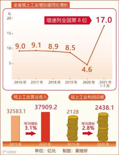 今年以来,江西工业运行“成绩单”持续抢眼——前7个月,全省规模以上工业实现营业收入23115.5亿元,同比增长36.0%,增速列全国第2位;两年平均增长17.7%,增速列全国第3位。全省规上工业增加值同比增长17%,增速列全国第8位;两年平均增长9%,增速列全国第6位。