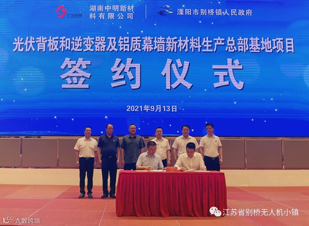 ▲湖南中明新材料有限公司董事长郑会登与别桥镇人民政府镇长高洁签署《项目投资协议》