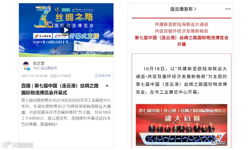 ▲ 连云港发布新媒体平台对丝路物博会开幕式进行直播