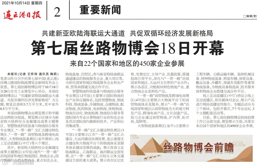 ▲ 连云港日报大篇幅报道丝路物博会盛况