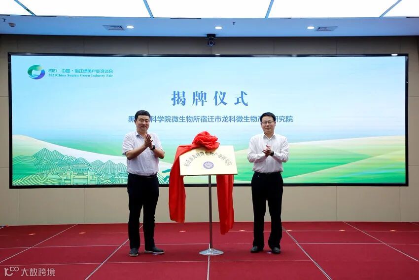 宿迁市科技局党组书记、局长王峰和洋河新区党工委书记顾宇为黑龙江科学院微生物所宿迁市龙科微生物产业研究院揭牌。