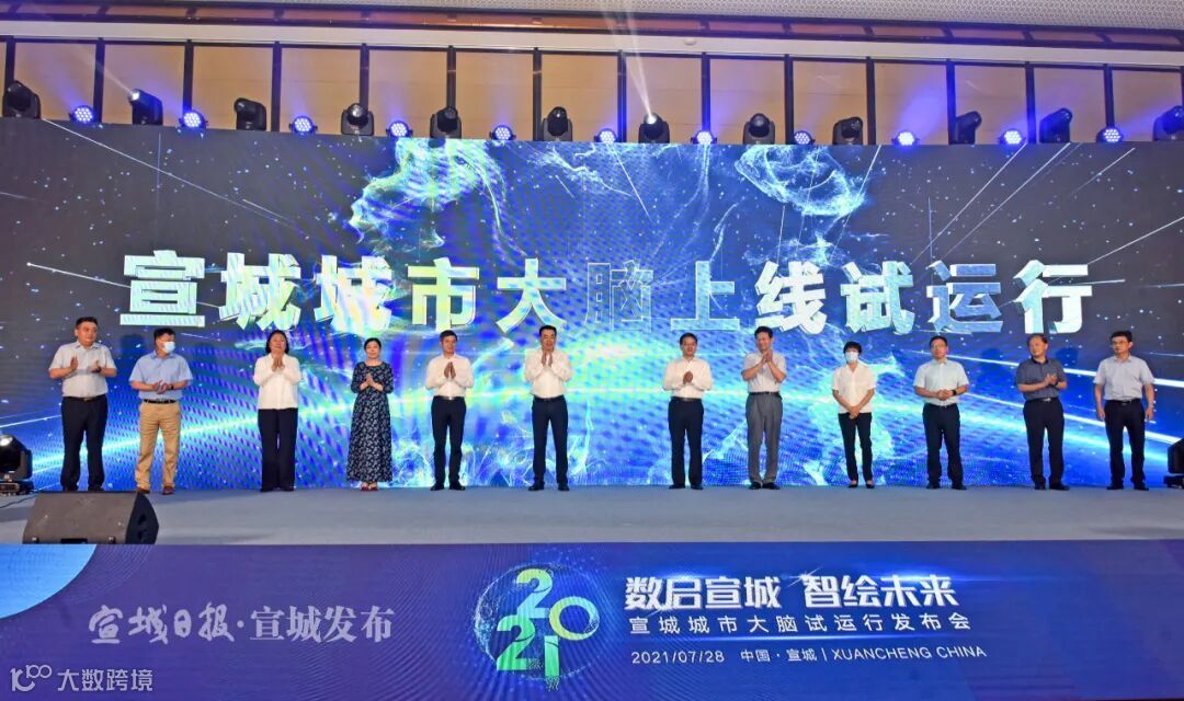 近日,宣城城市大脑试运行发布会举行。市委书记孔晓宏出席并宣布宣城城市大脑上线试运行。市长何淳宽,省数据资源局党组成员、副局长叶文卿,科大讯飞股份有限公司总裁吴晓如分别致辞。市领导于静波、徐德美、黄敏、孙来福、张黎勇,宣城经开区管委会主任刘家和,市政府秘书长盛浩出席仪式。