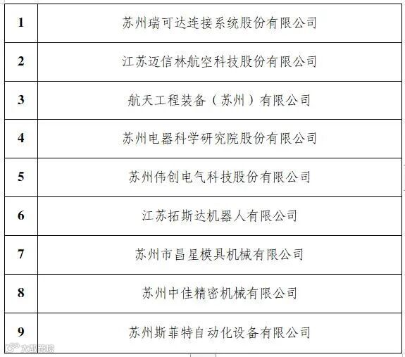 苏州市航空航天产业优选企业培育库
