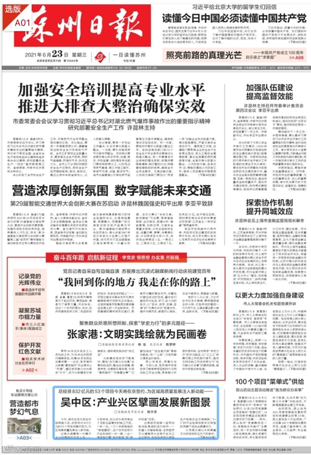 《苏州日报》头版报道