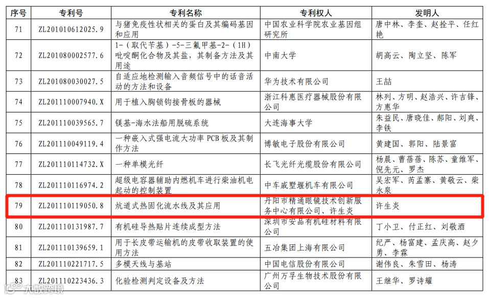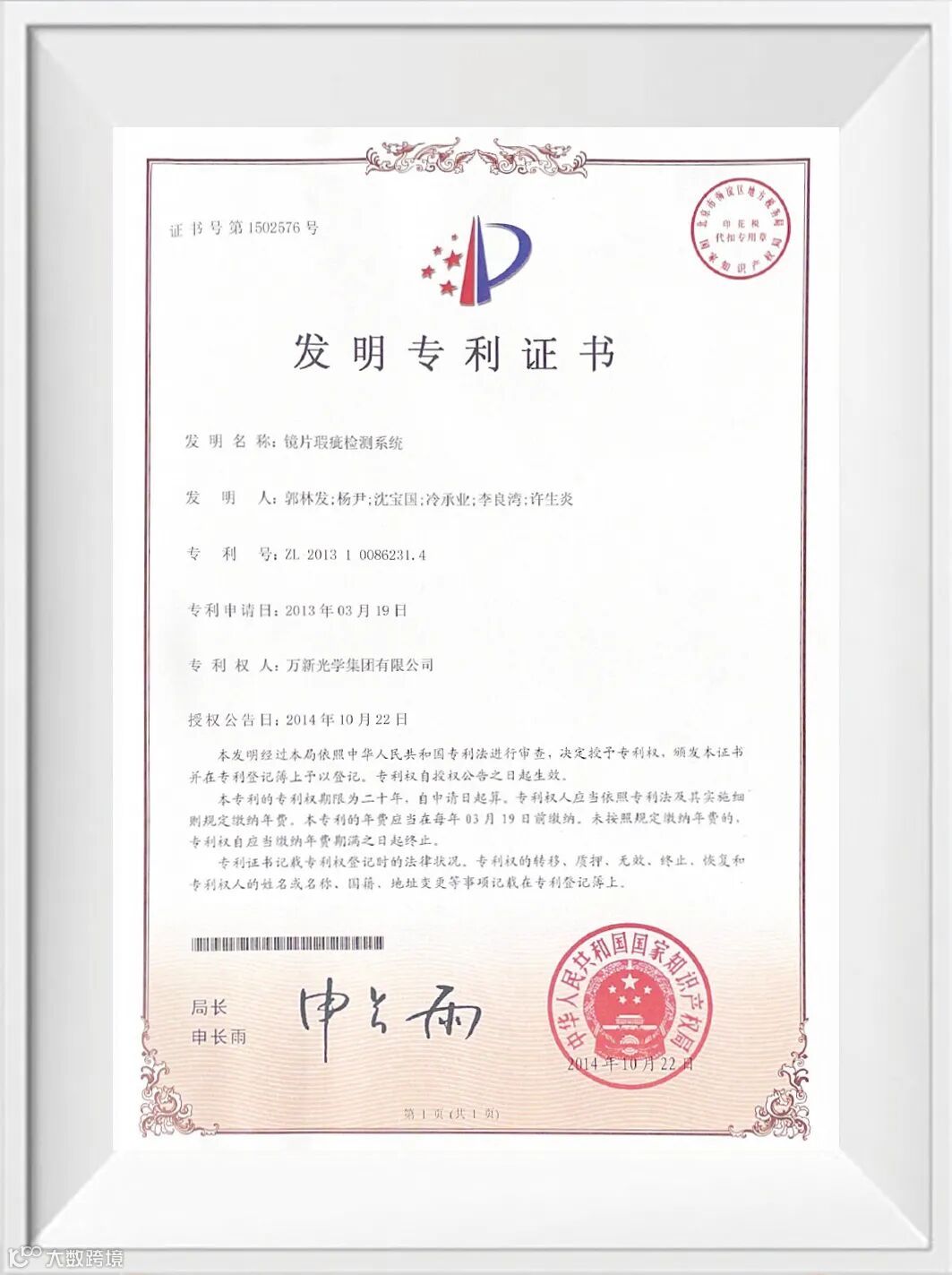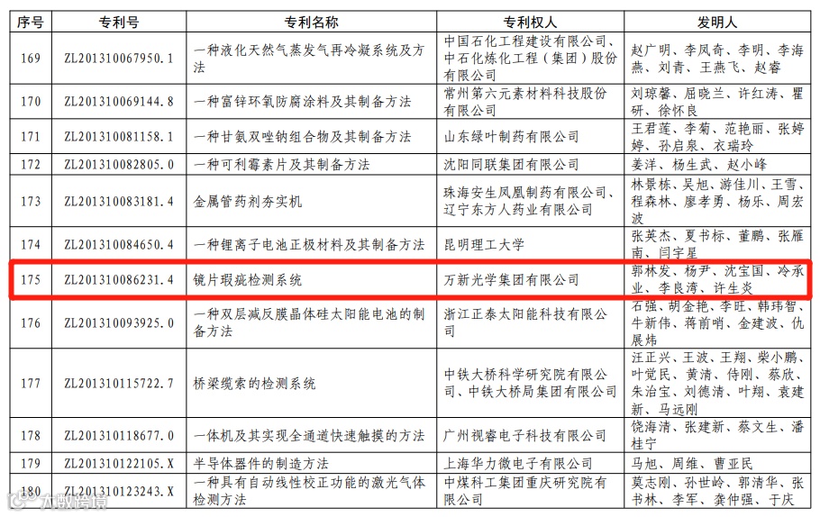 近日,国家知识产权局公布了“第二十二届中国专利奖”获奖名单,我市万新光学集团有限公司专利——镜片瑕疵检测系统以及集团旗下丹阳市精通眼镜技术创新服务中心有限公司专利——炕道式热固化流水线及其应用分别荣获“中国专利优秀奖”。