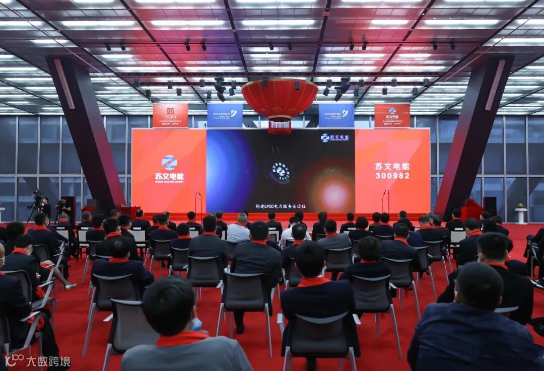 4月27日9点25分,深圳证券交易所内钟声鸣响,苏文电能科技股份有限公司在深交所创业板首发上市,股票简称“苏文电能”,代码“300982”。