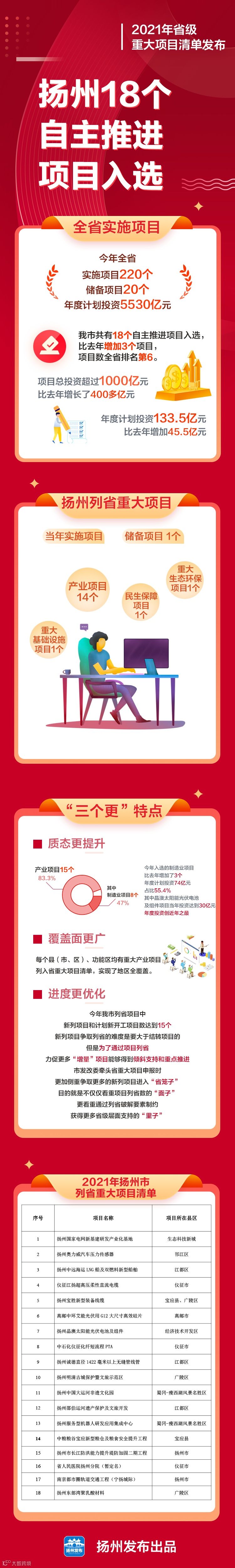 扬州:2021年省级重大项目清单发布,扬州入选的是……